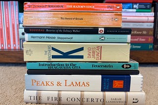 I speed through a debut novelist's tale of music and love; dig further into The Bhagavad Gita; journey to Tibet and the interior; savor novels by Hesse…