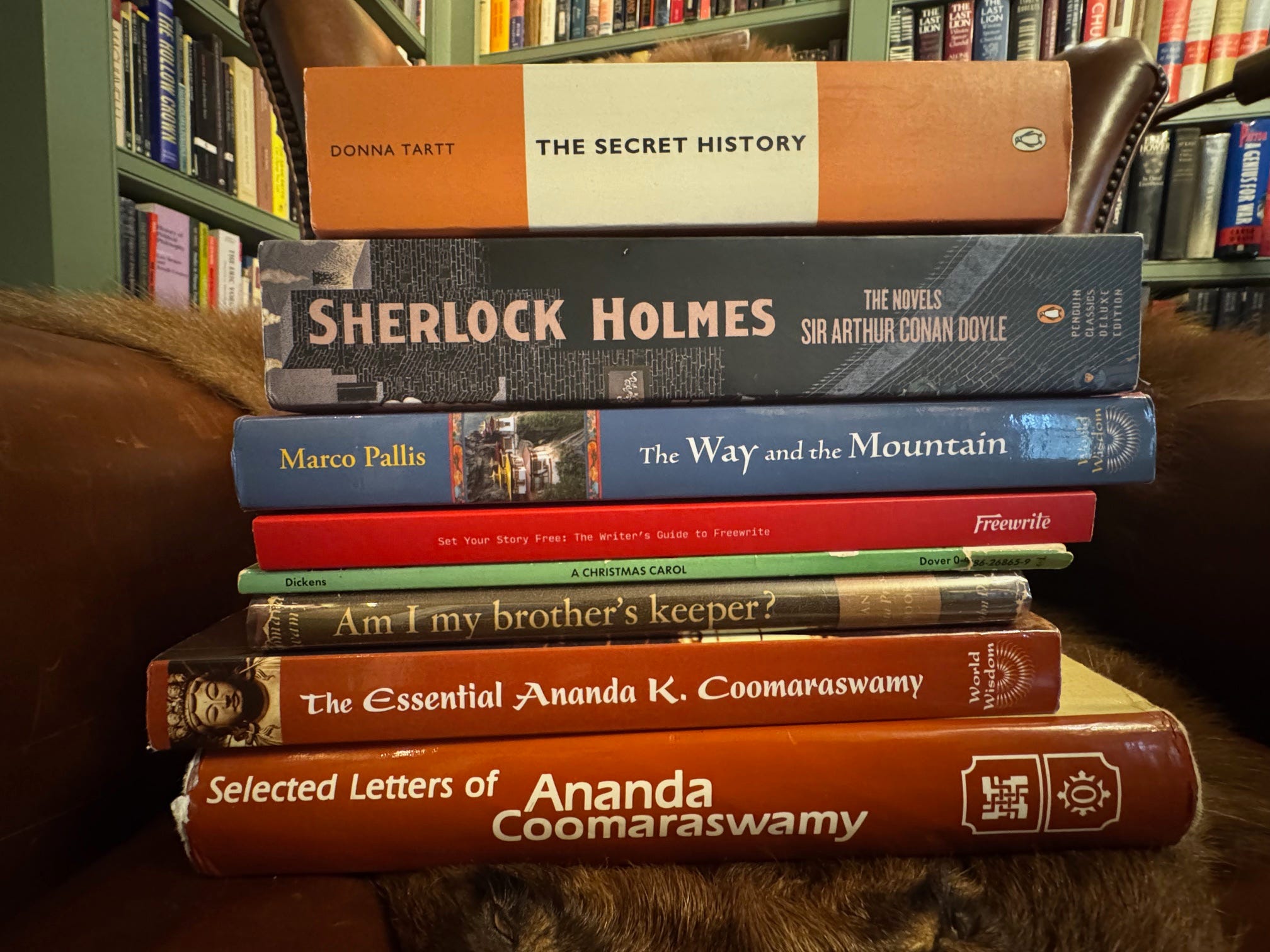 Donna Tartt's The Secret History; Frankenstein and Dracula; More on Traditionalism from Pallis and Coomaraswamy; on freewriting; and the beginning of Sherlock Holmes
