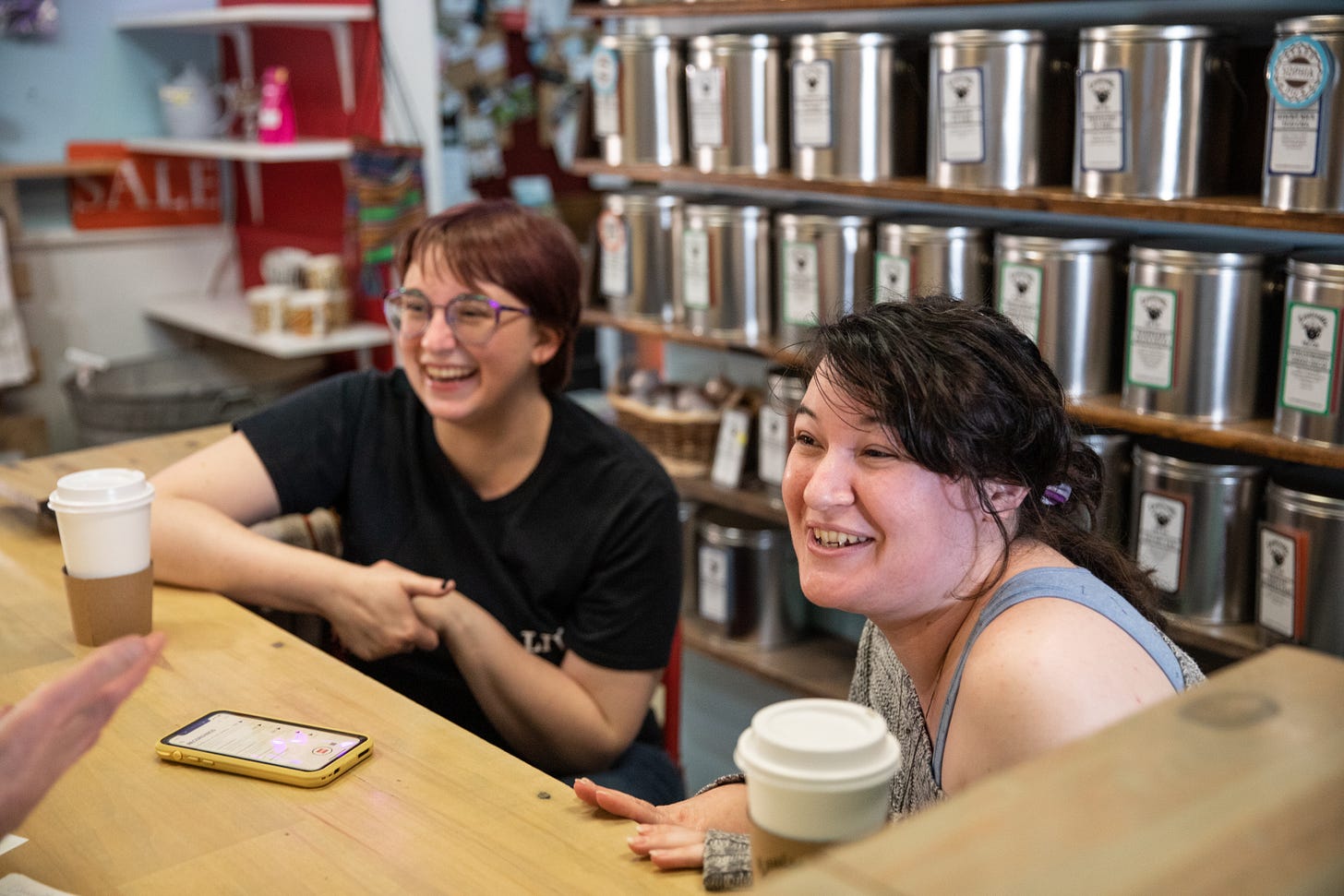 We needed tea here. So then Nicolette and Nick [Spears, Nicolette’s husband and a part owner of the shop] decided to open up a tea business. And I really liked that idea. So after I graduated high school, I decided to come and join them. Then Sarah followed suit soon thereafter.